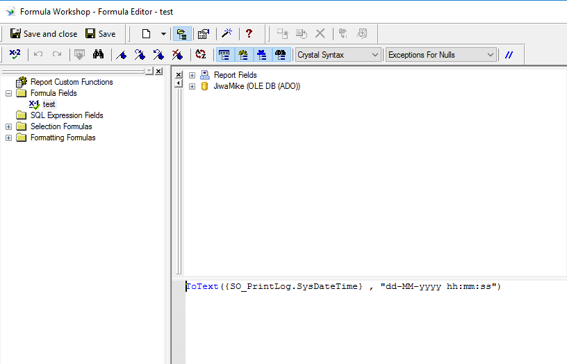 Hi, My version of Crystal 2013 won't see the DateTime format option for our Jiwa DateTime fields?? as one example SO_PrintLog.SysDateTime is only recognised as Date.