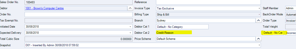 I'm writing a plugin which gets the debtor categories 1 and 2 and displays them on the sales order header just below the branch.