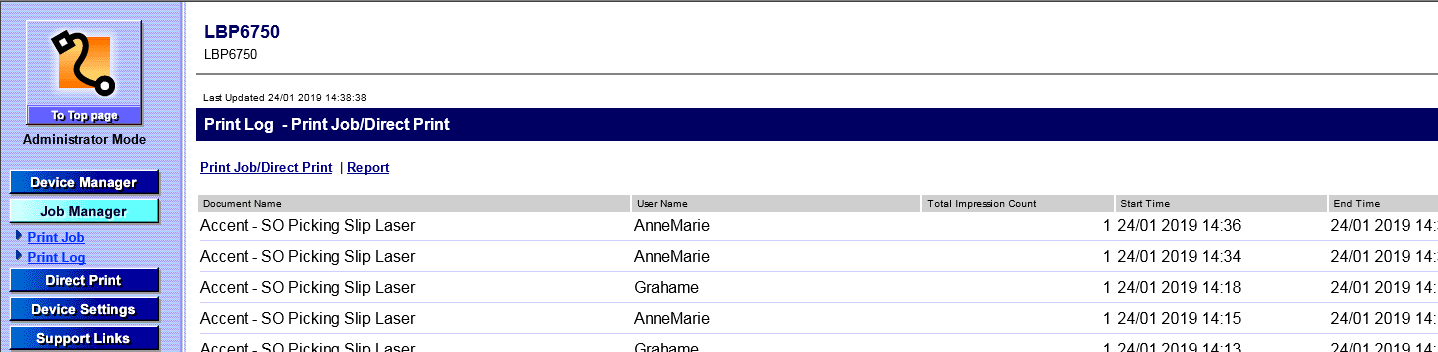 Customer has found a Print Log, for Printer, and we Noticed that JIWA sends all Prints with Document Name, same as JIWA Report Name.