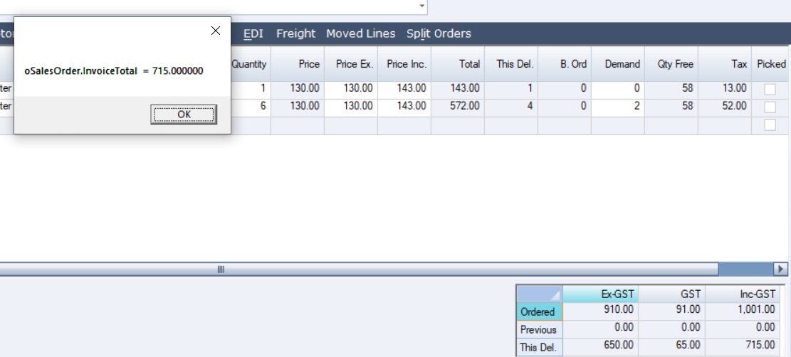 I have this bit of code where I am expecting the MessageBox to display the Ordered (Inc GST ) Value on sales order window ( bottom right )