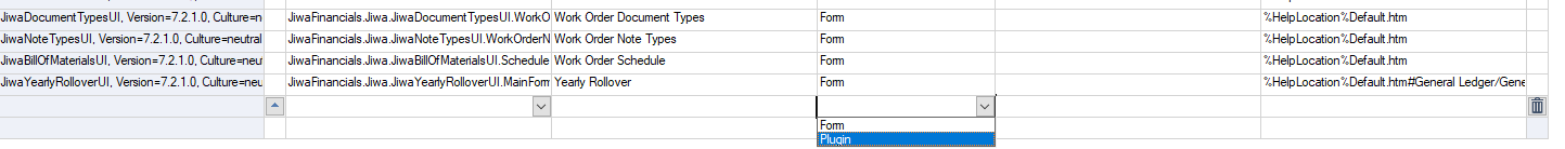 2. Add a row by selecting the Form Type of Plugin in the drop-down combo