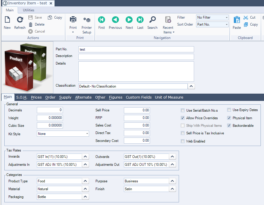 First I'll create a test product with PartNo 'test' - I'm going to try to use SQL injection later to delete this part - so this new part is going to be our sacrificial canary - if it disappears then the injection attack was successful - if it doesn't then the attack failed.