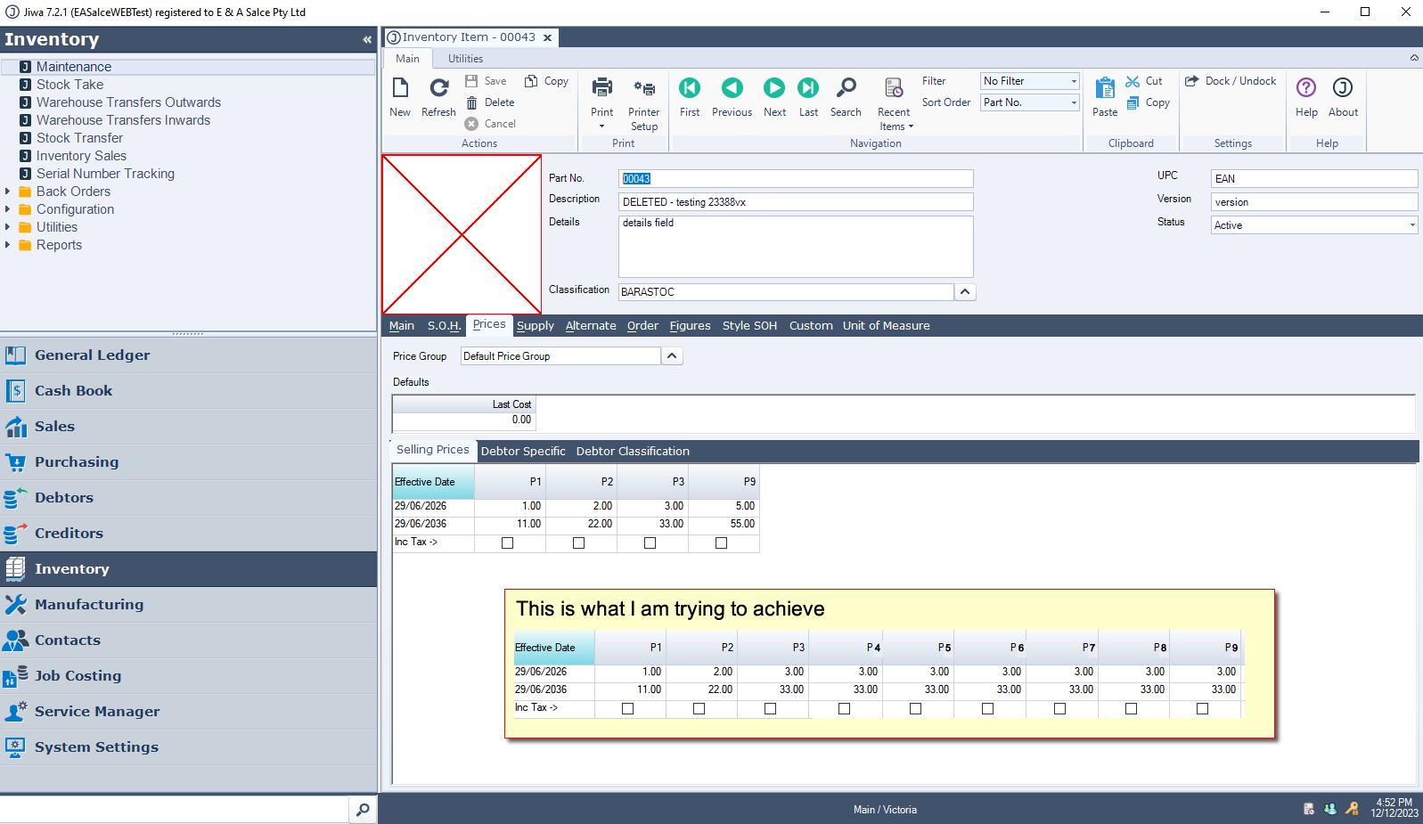 I currently have inputs in the inventory prices form for P1, P2, P3, so I can put in the prices. For testing purposes, I need to have P1, P2, P3, P4, P5, P6, P7, P8, P9 displaying (if that is possible) so that I can input test data and extract it for another program.