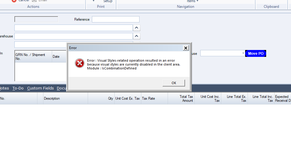 When adding Jiwa as work resource, it works well but keep getting this error sometimes, especially when you click on search on SO maintenance , PO maintenance etc , pls see attachment