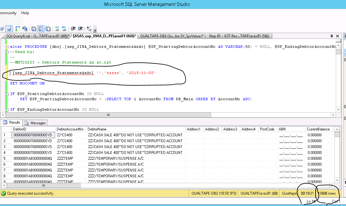 we found that the standard Jiwa Statement has been running very slow, so we ran the stored procedure to time it. The result only got returned after 19 minutes of running.