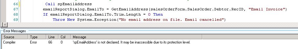 SQL = "EXEC spEmailAddress '" & SalesOrderObject.DebtorID & "', 'Email Invoice'"