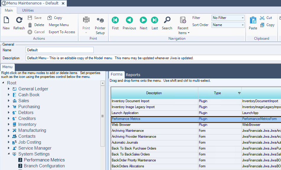 • Open Menu Maintenance and add the "Performance Metrics" form to the desired menu(s).