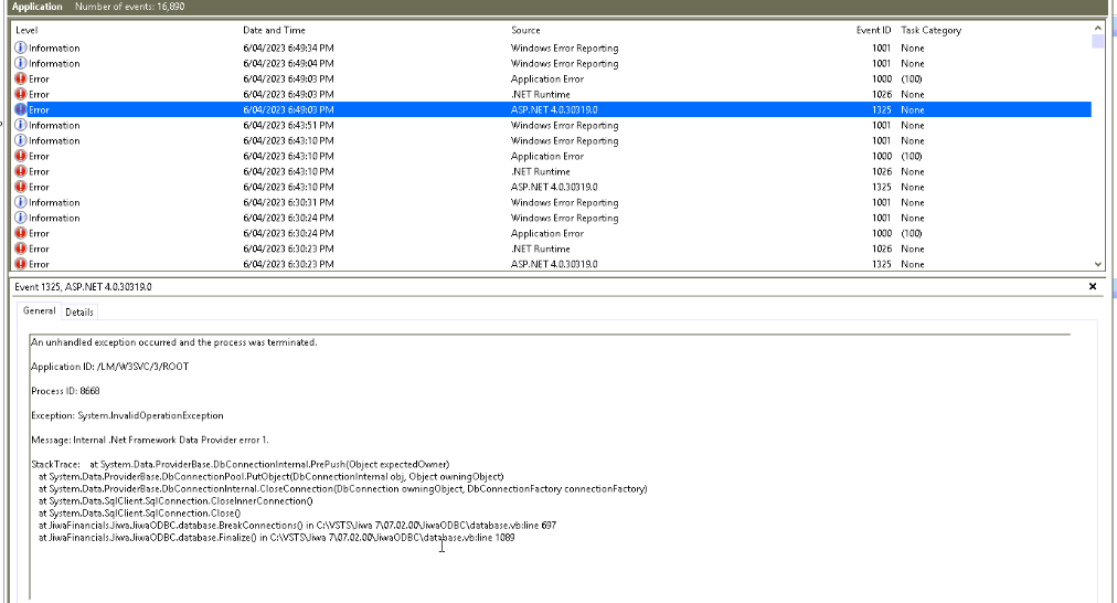 The description for Event ID 0 from source Jiwa 7 cannot be found. Either the component that raises this event is not installed on your local computer or the installation is corrupted. You can install or repair the component on the local computer.