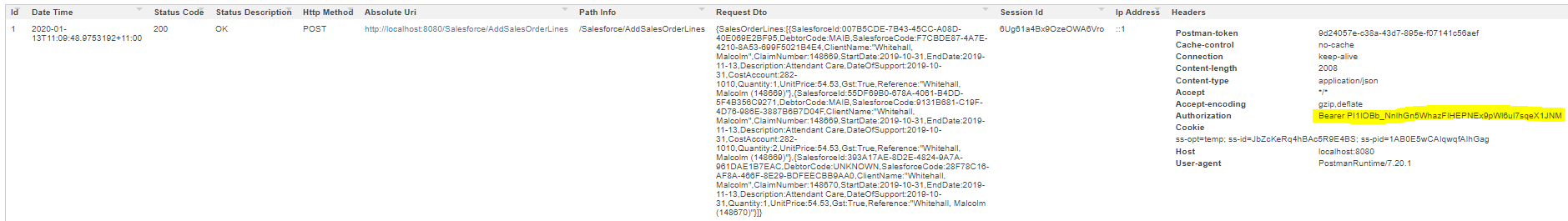 However http://localhost:8080/Logs/Today, which does not require authentication, is still working, and shows the Authorization Bearer (API key) ...