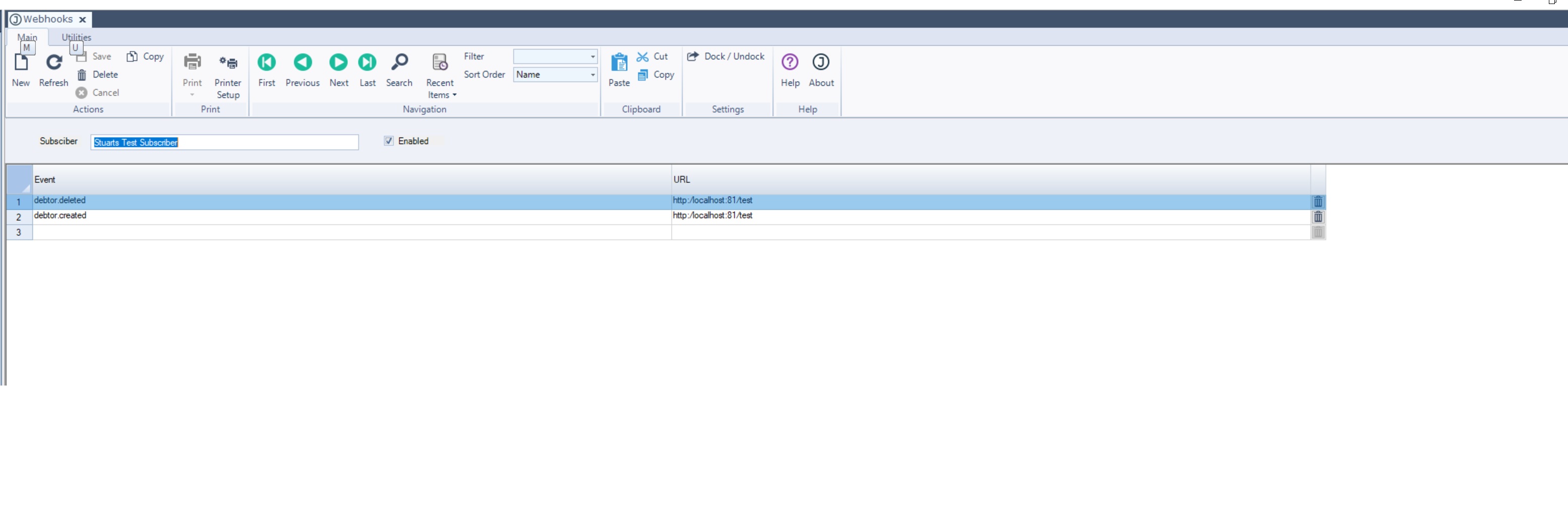 Because I needed the functionality to maintain webhook subscribers and subscriptions for a number of clients I've ended up building a screen to do it, as one of the clients will periodically need to disable the webhooks, which also gave me the opportunity to try out a tool I built back in March to also generate the necessary business objects and collection item objects as well and largely left me with only having to write the screen code.