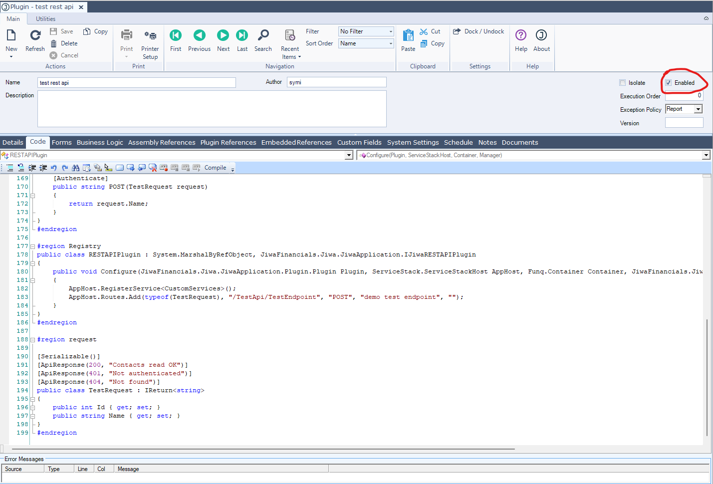 public class RESTAPIPlugin : System.MarshalByRefObject, JiwaFinancials.Jiwa.JiwaApplication.IJiwaRESTAPIPlugin