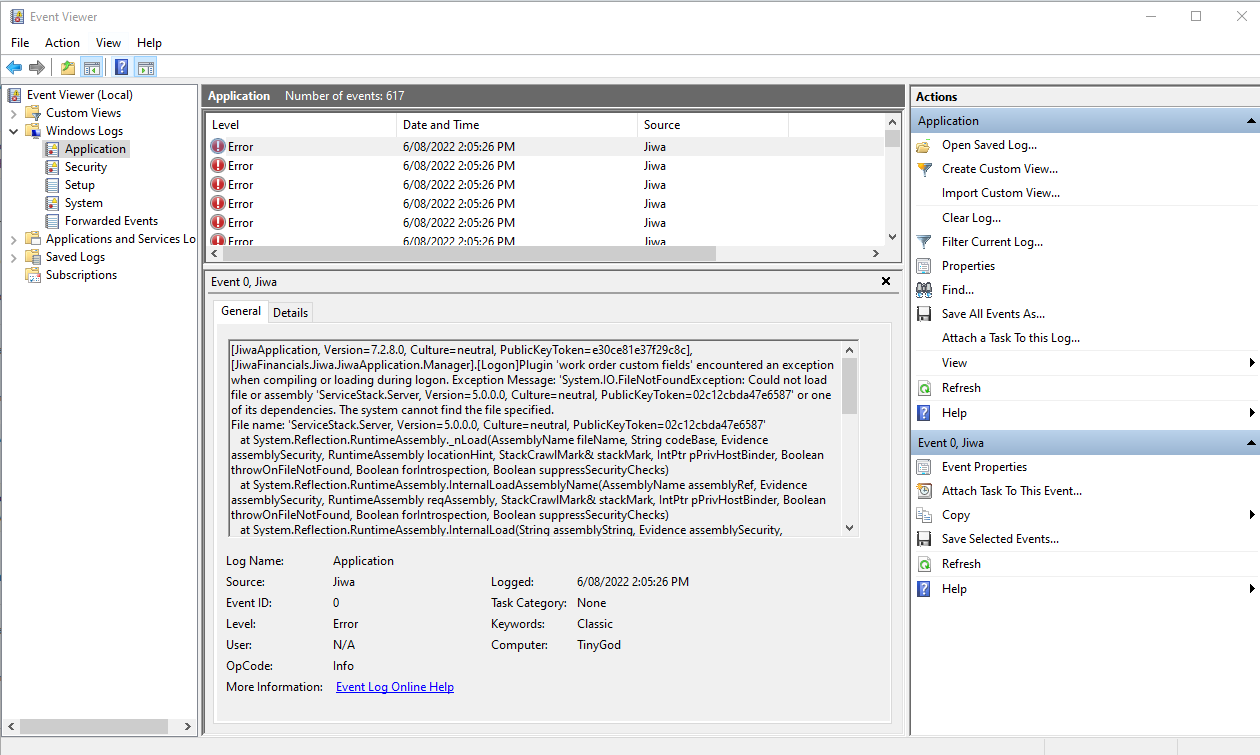You should also disclose what version of Jiwa you have installed, and what the version of the REST API plugin is.