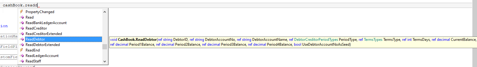 cashBook.ReadDebtor(param, param, param and so on)